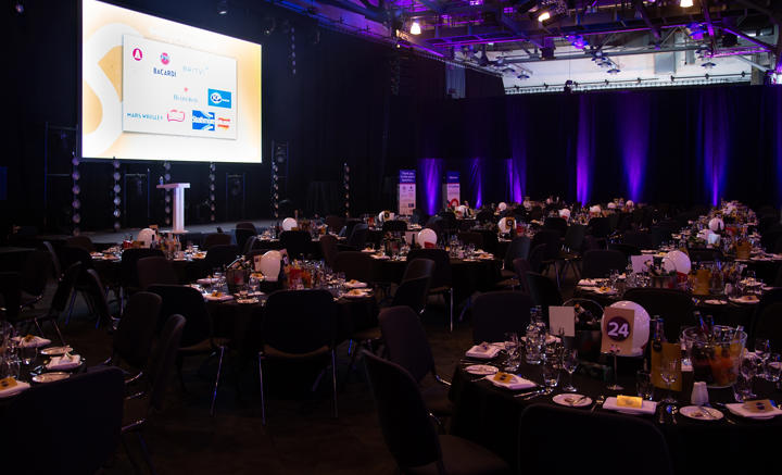 The evening dinner and awards took place within the same hall as the morning conference. There was a small window of opportunity to turn around the space to create a different feel within the main room which was achieved seamlessly. The evening was hosted by comedian Patrick Kielty with a combination of awards and a three-course meal provided by the venue’s in-house catering partner, Sodexo.